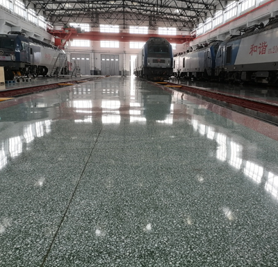 格爾木機(jī)務(wù)段新建年檢修庫在做高強(qiáng)升級水磨石定制前,貴段領(lǐng)導(dǎo)在進(jìn)行多方面比較后,對原有設(shè)計(jì)方案進(jìn)行變更為機(jī)輛高強(qiáng)升級水磨石地坪。貴段